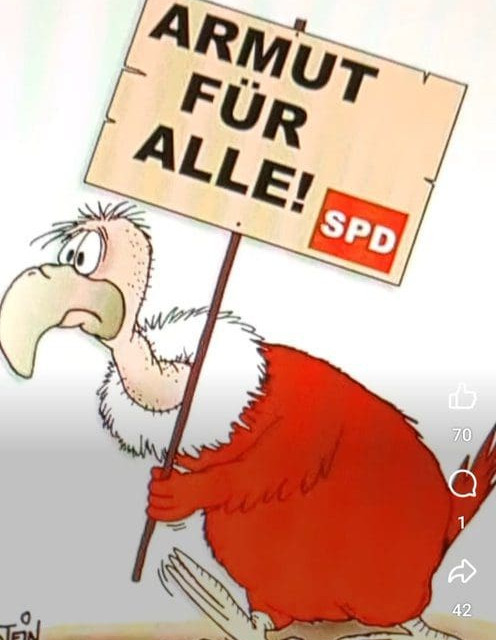 Links wird lange keine Rolle mehr spielen, es sei denn national betont. Diese tödliche Mixtur wird neue Urstände feiern in den nächsten Jahren. Führungsfigur hier, Sarah Wagenknecht. Nicht einmal in dem Themenfeld Soziale Gerechtigkeit behält die SPD einen Zutrauen in Kompetenz: