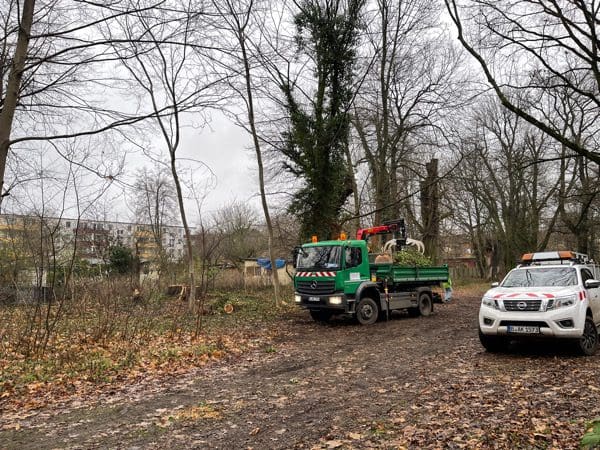 Zuständig zeigt sich das Grünflächenamt Pankow für die Baumpflege. Das Grünflächenamt nimmt das Naming seiner Amtsbezeichnung wortwörtlich. Bald haben wir im Park ausschließlich Rasen, wenn es so weiter geht.