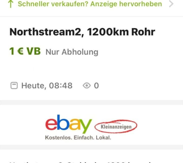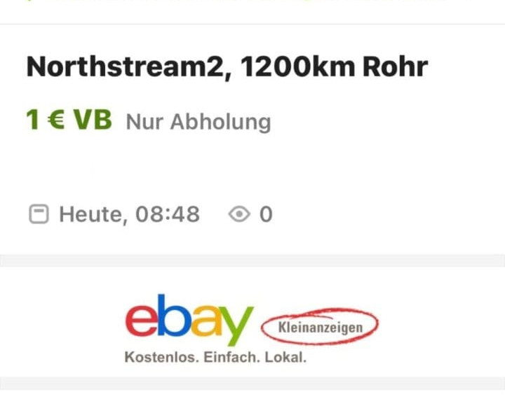 Northstream2, 1200 km Rohr günstig abzugeben VB 1 €