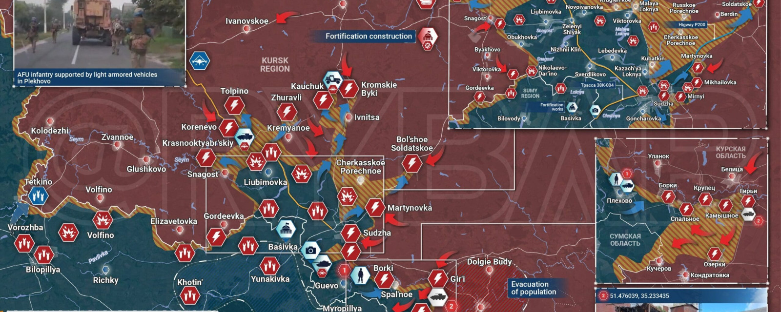 Rybar’s map on Telegram gives a good picture of the current situation in the Kursk border region. Addition to the map: Russia is digging trenches in the ground further inland, in front of Kursk.