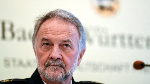 Foto: dpa. Polizeipräsident Bernhard Rotzinger spricht während einer Pressekonferenz zu Journalisten