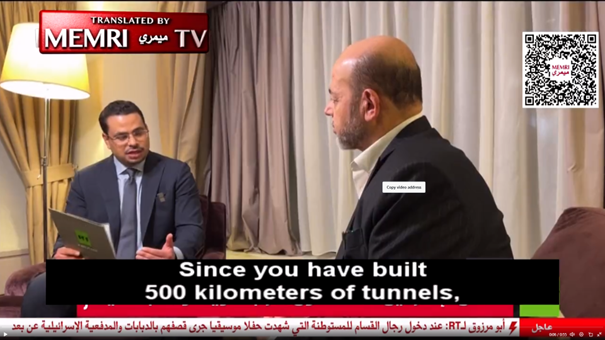 Hamas Official Mousa Abu Marzouk: The Tunnels in Gaza Were Built to Protect Hamas Fighters, Not Civilians; Protecting Gaza Civilians Is the Responsibility of the U.N. and Israel #Hamas #Gaza